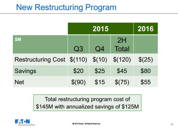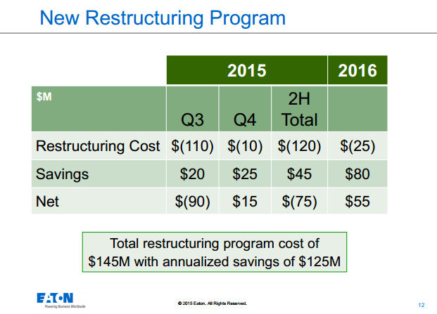 Eaton Corp.'s new restructuring plan. Source: Eaton Corp.