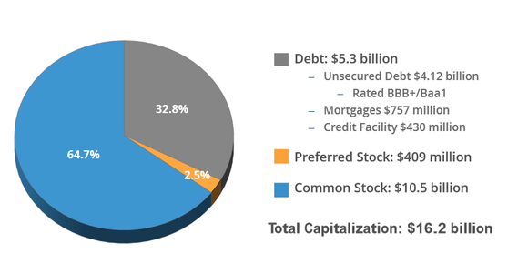 REITs tend to perform poorly during periods of rising interest rates for a couple of reasons. For starters, higher interest rates cause the REIT's cost of borrowing money to increase, so the spread between its cost of capital and its rental income can narrow significantly. This tends to have the biggest effect on REITs that rely heavily on borrowed money, and Realty Income's debt is relatively low at 32.8% of its overall capitalization. However, the fact remains that Realty Income will likely suffer from some spread compression as interest rates rise.