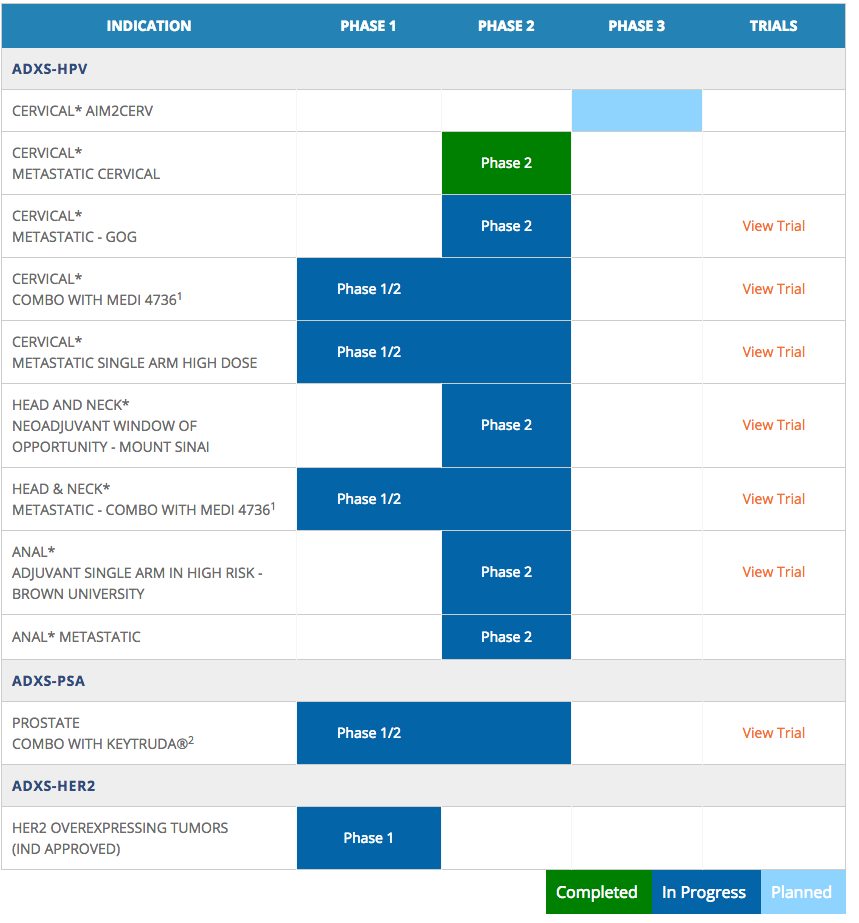 While Advaxis' technology is very interesting, investors should remember that they are playing in a crowded space, and the stock will likely remain high-risk for quite some time. With Advaxis' lead compound just now entering phase 3 clinical trials, it will still be a few years before the company could see any revenue. In addition, the current burn rate of $40 million per year will likely increase as its clinical trial work advances. Meanwhile, with approximately $100 million currently on the balance sheet, the company may need to raise additional capital at some point in the future.