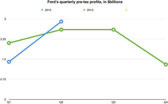 Back in January, Fields and CFO Bob Shanks said repeatedly that 2015 would be a "breakthrough" year for Ford in terms of pre-tax profit. Both reiterated that again during the second-quarter call.