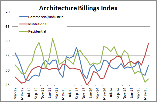 The key market here is architectural coatings, which make up 35% of overall coatings sales. The best way to follow North American construction activity is to look at the Architecture Billings Index from the American Institute of Architects. A reading above 50 indicates a future expansion in activity.
