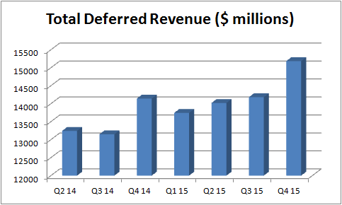 When technology companies shift toward a "software-based model," it usually suggests that deferred revenue should start to increase, as software tends to be sold more on a recurring basis (particularly if it's a cloud-based subscription) rather than hardware products, which tend to more one-off based sales.