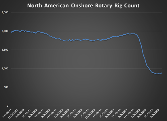 Tyler Crowe: I can sympathize with investors who have exited their positions with National Oilwell Varco (NOV +0.62%), but it doesn't mean that I agree with them. The reason that National Oilwell Varco's shares have declined so much in the past year is twofold: There are too many rigs in both the offshore and North American onshore market today. A quick look at how fast the U.S. onshore rig count has declined gives you an idea of how many rigs are sitting idle in the wings today.