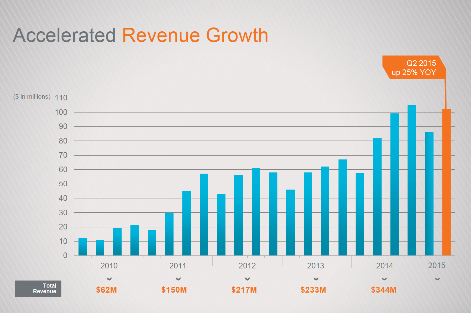 The important question was, how would this affect Enphase? Vivint accounted for 30% of Enphase's total revenue in the second quarter of 2014, and Vivint only accounted for 14% of Enphase's total revenue in the second quarter of 2015. Evidently, the company transitioned well. Revenue from Vivint decreased 40% year over year, but revenue excluding Vivint grew 50% year over year.