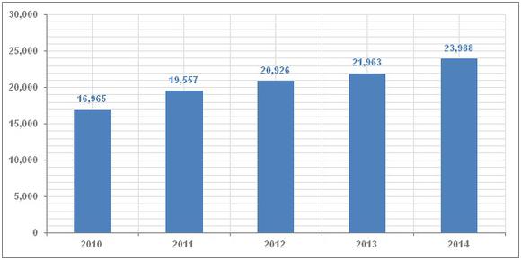 Also, the company earns fuel surcharge revenue, which has gone up from $0.6 billion in 2009 to $2.8 billion in 2014. This revenue helps transportation companies to moderate the effect of fuel-price increases, as fuel forms a significant portion of operating expense. Although in recent times, falling oil prices have hit surcharge revenue, prices are not likely to remain at these levels for long.
