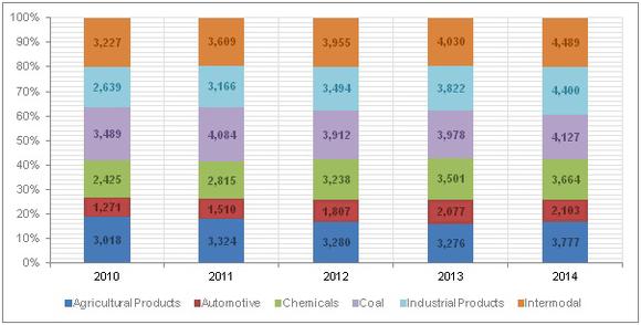 The company's average weekly carload and intermodal traffic has also improved over time, from 149,289 in 2009 to 183,858 in 2014.