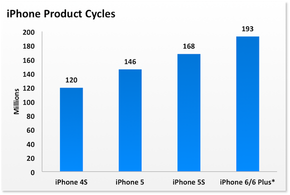 Notice how strong the 6 and 6 Plus cycle has been, and it isn't even over yet. After everything is said and done, the 6/6 Plus cycle will easily be over 200 million units. There should be no question that Apple's move to larger displays has been incredibly successful.