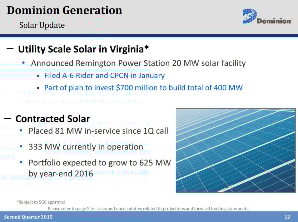 A full update on Dominion Resources solar initiates can be seen on the following slide.