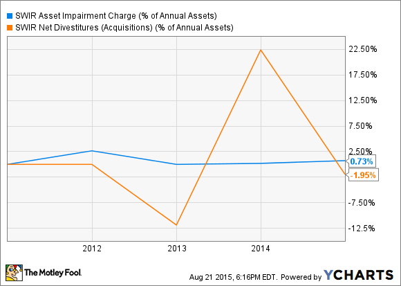 Unfortunately, Sierra Wireless has taken asset impairment charges in three of the past four years. The charges as a percentage of assets are not noteworthy, but they are more significant as a percentage of expenditures on acquisitions.