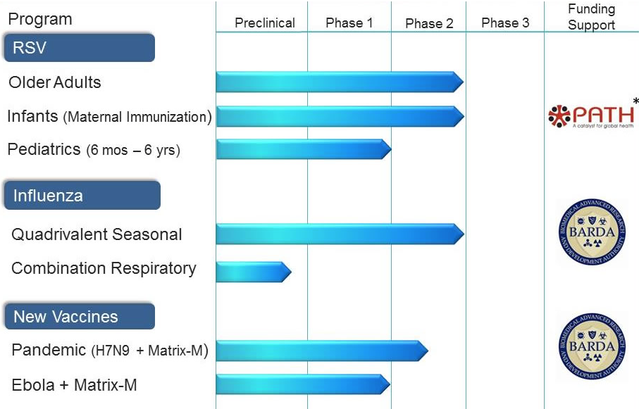 Novavax is also working on an RSV vaccine that could vaccinate babies before birth. The FDA apparently likes this idea a lot and has granted the vaccine fast-track status for this indication. We shouldn't have to wait long for an update on the progress here, either, as the company will be releasing safety and immunogenicity data in its phase 2 trial in infants later this quarter.