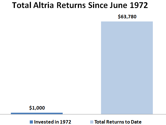Philip Morris International (PM 2.06%) investors are at least partly hoping to see the same trends that led its predecessor and former parent, Altria (MO 0.12%), to become one of the best investments over the past half-century: