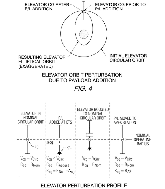 Lockheed Martin sketches out its space elevator. Some math required. Illustration source: U.S. Patent and Trademark Office.