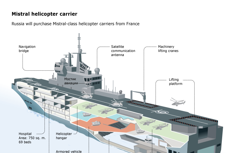 Our story begins five years ago, and somewhat to Egypt's north, where in 2010, France signed a contract to build and deliver to Russia two powerful Mistral-class amphibious assault ships. Sometimes classed as "helicopter carriers," or even small aircraft carriers, each 16,500-ton Mistral warship is capable of carrying: