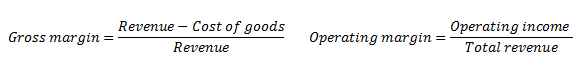 2. Gross profit margin/operating margin: These two profitability metrics show how efficiently a company generates its profits and along with ROE can provide a good picture of how well managed and profitable a company is. The two metrics are calculated like this: