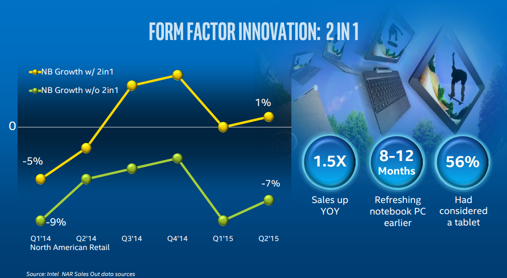 In response, Intel, working in tandem with its PC system builder partners, tried to make notebooks more "tablet-like" in a bid to stop (and potentially even reverse) the cannibalization of PCs and tablets.
