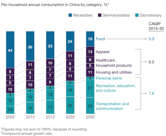 Discretionary spending categories are showing the fastest growth, a trend that is expected to continue. Source: McKinsey.