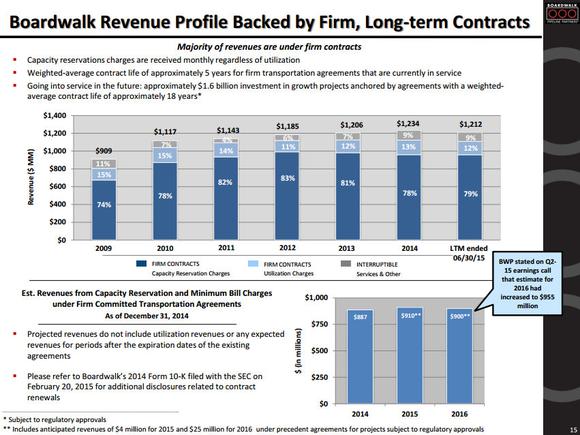 Boardwalk largely fits this criteria as about 90% of its revenue is backed by firm, long-term contracts as we see in the following slide.