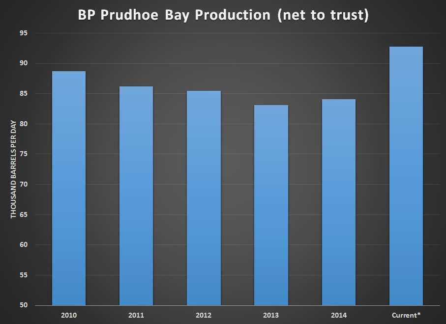 So, what does this mean to an investor? Basically, you can assume that production will be in decline from here on out and the royalty revenue from that production will also be in decline as long as oil prices remain constant. This also means that the share price for BP Prudhoe Bay will decline over time as the trust approaches those fateful termination conditions.