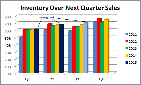 As you can see in the chart above, the data suggests that Deere's inventory position in the third quarter of 2015 looks a little high on a historical basis.