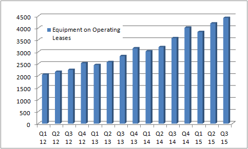 As the following chart demonstrates, Deere has significantly increased the amount of equipment it has on operating leases. In fact, the figure has more than doubled since the start of 2012.
