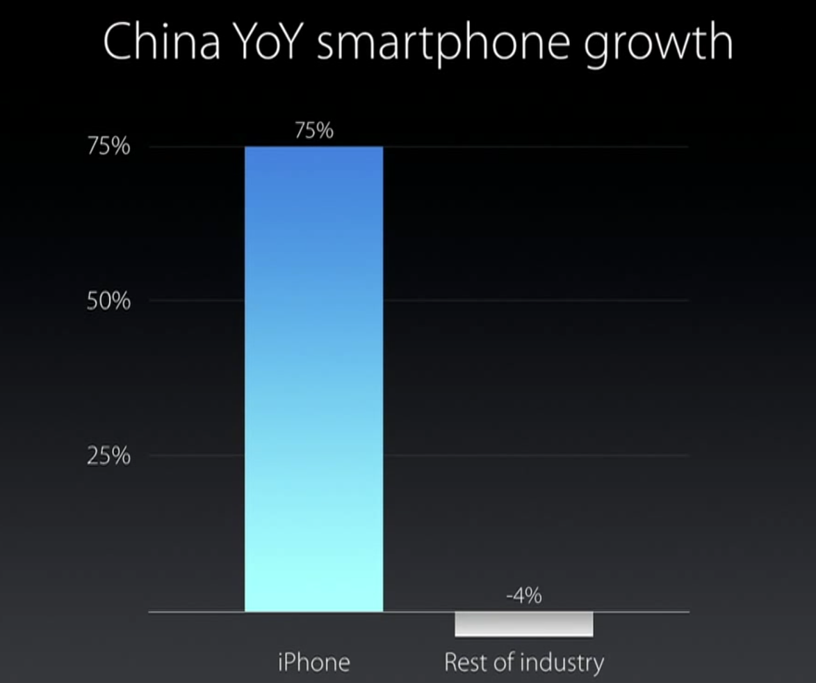 IDC data from Q2 smartphone sales in China is used for chart. Chart source: Apple's September event.