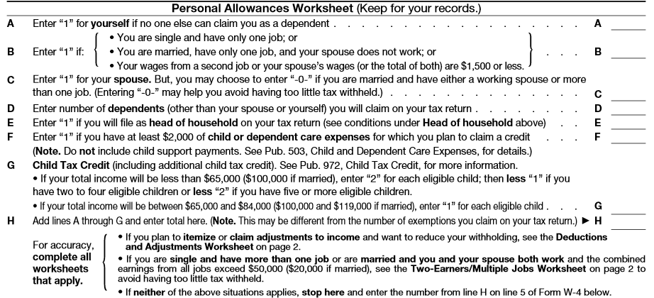 Basically, each allowance you claim tells your employer to withhold less money from your paychecks. Fortunately, there's a worksheet provided with your W-4 that can help you determine the correct number of allowances to claim.
