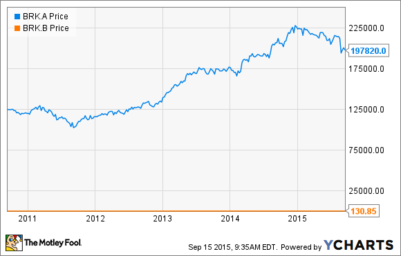 As you can see, Berkshire Hathaway's A stock has been mostly rising for the last few years. Source: YCharts.com.