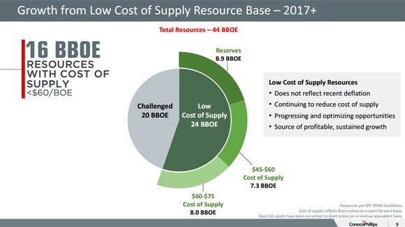 As Lance notes, the company is currently sitting on 44 billion barrels of oil equivalent resources, more than a third of that, or 16 billion BOE, has current supply costs of $60 per barrel or less. That's an enormous resource base as it will keep the company going for decades. Because of this vast resource base, Lance said: