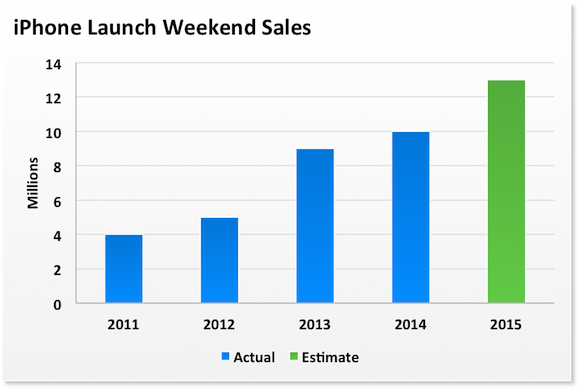 There is also another issue of timing. The 2015 launch is occurring slightly later in September than prior years. In fact, Apple's fiscal year just ended yesterday -- in the midst of the launch weekend. That means a portion of the launch weekend total will carry over into fiscal 2016. In prior years, the full launch weekend and perhaps the first week of sales is captured before the fiscal year closes.