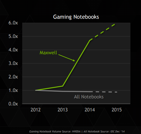 Indeed, according to NVIDIA in a recent investor presentation, the market for gaming notebooks has been growing quickly, dramatically outgrowing the overall notebook market.
