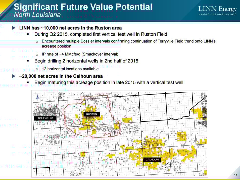 Memorial Resource Development seems to be confirming what LINN Energy has suspected, which is that its acreage in Northern Louisiana is a valuable commodity as it's sitting on a pretty compelling trend. It suggests that LINN Energy could very well be able to sell the acreage, possibly to Memorial Resource Development, and use the proceeds to pay down debt or acquire a cash flowing oil and gas asset elsewhere. It's certainly a positive development for a company that could use one these days.