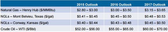 Of course, many of those projects will also face exposure to volatile energy prices, so management's rosy distribution guidance is based on some key assumptions about the future prices of natural gas, NGL, and oil.