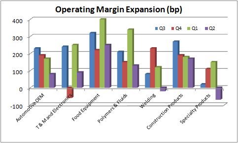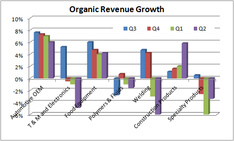 Clearly, investors can't expect much help from the economy in 2015, and a look at organic revenue growth across each segment shows that highly cyclical areas like welding and test and measurement and electronics have seen conditions deteriorate in 2015.