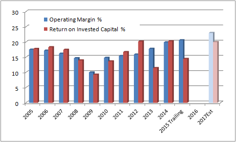 Essentially, management expects ROIC to be 20% or above by 2017 and operating margin to be around 23%. Here is a graphical demonstration of the expected improvements: