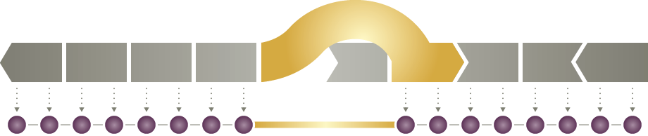 The mutation in the grey exon is skipped, creating a more-complete protein depicted by the purple circles. Source: Sarepta Therapeutics.