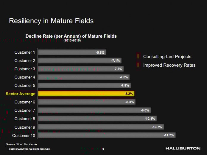 Now Halliburton plays a key role in delivering consulting-led projects to increase recovery by finding bypassed pay (i.e. oil and gas producing zones), oftentimes applying new technology to older fields. And what's important to remember, that in spite of the low commodity price, mature fields, they are more resilient. Now let's put it in the context of oil economies, the bottom line is, that it's better to make any money than to make no money. And so that underpins that whole complex. They continue to work, and they continue to be a meaningful part of our business, particularly in the Middle East, Latin America, and in Asia.