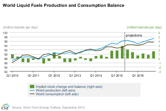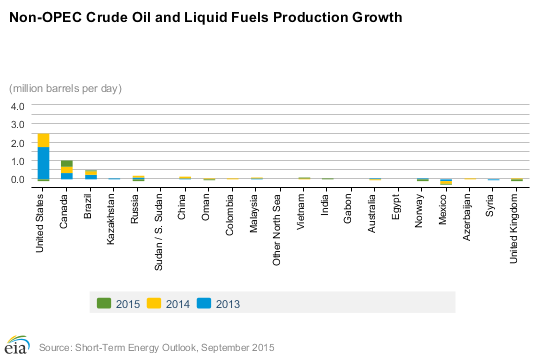 Even in 2015 as Saudi Arabia has increased production slightly to keep pressure on shale producers, OPEC is only expected to increase production by 0.8 million barrels per day. That's even less than the expected 1.17 million barrel per day increase in global demand.