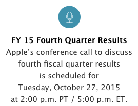 Check in on Apple's fourth-quarter earnings after market close on Oct. 27 and tune in to the company's live earnings call at 5 p.m. ET.