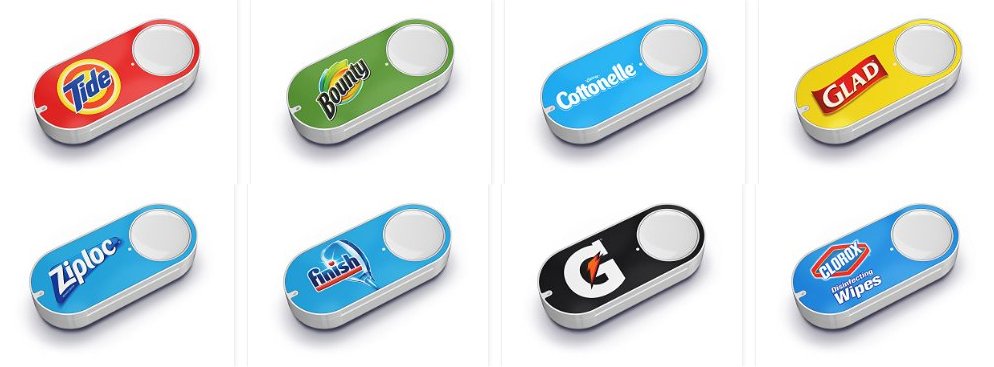 Earlier this year, Amazon (AMZN +0.16%) unveiled the Dash Button, which can be attached to surfaces around the home and used to reorder consumable products like trash bags, toilet paper, razors, or detergent. Amazon basically gives out the devices for free -- each button costs $4.99 but includes $4.99 of credit toward purchases.