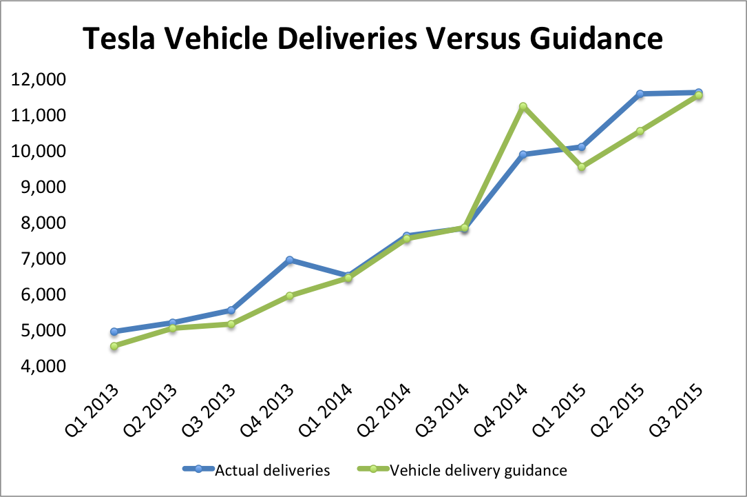 Up until electric-car maker Tesla Motors' (TSLA +2.57%) third quarter, most of the company's deliveries were about on pace for it to achieve its ambitious outlook for full-year deliveries. After all, the company was planning for the first half of the year's deliveries to lag behind the second half's.