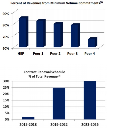 Holly Energy Partners' business model is an income investor's best friend, with 100% of revenue coming from long-term fixed-fee contracts and over 80% of revenue secured by minimum volume commitments, or MVCs, among the highest in the midstream industry.