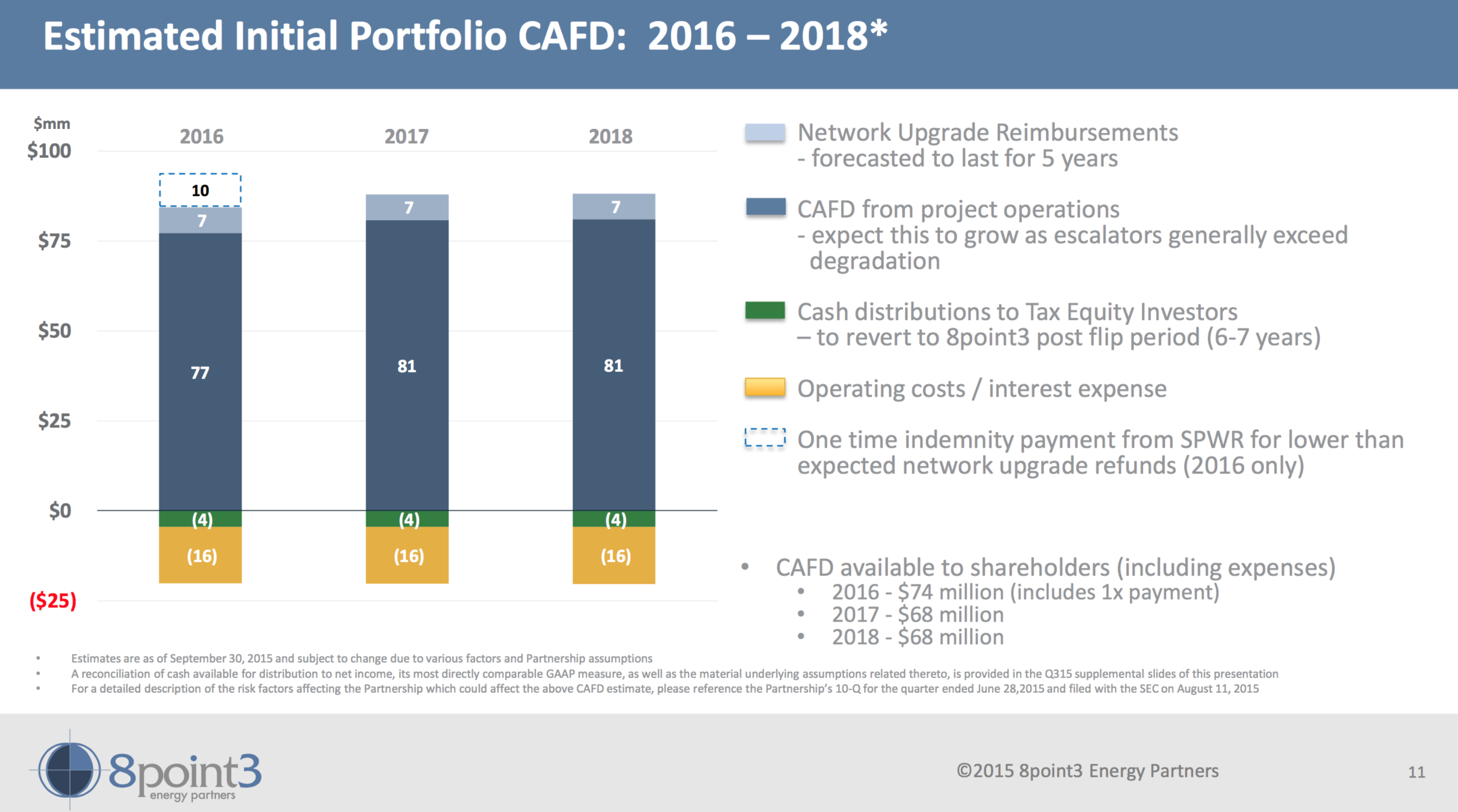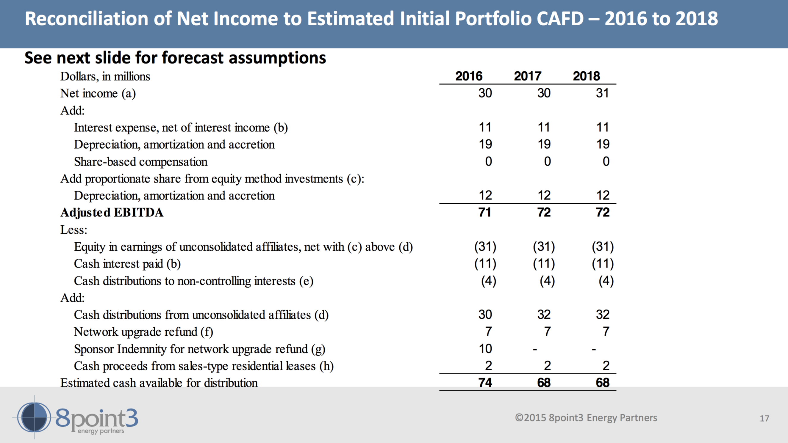 Since a yieldco is supposed to generate cash, it's important to know what the long-term cash generating profile looks like. Below is a chart from the conference call that shows how much cash is expected to be generated in the next three years, which is impressive when you consider that the company is worth just $223 million on the public market (not including the 51 million B shares owned by the sponsors).