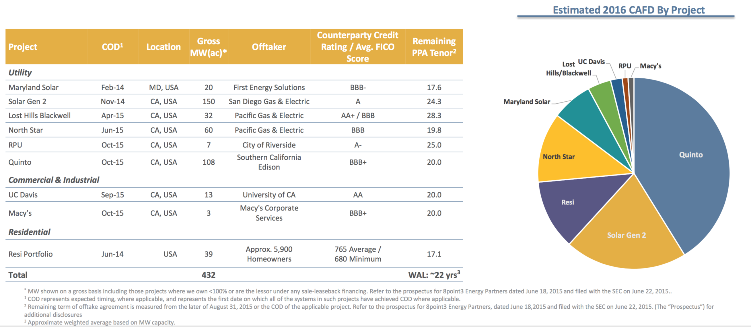 The first thing to look at is what 8point3 Energy owns. In the chart below, you can see that the company will have a 432 MW portfolio of assets completed at year's end, 301 MW of which was operational at the end of the third quarter.