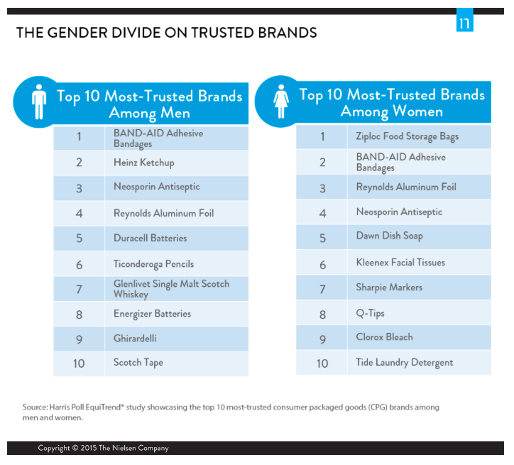 So what were the other two brands that were the most trusted by both men and women? Reynolds aluminum foil and Band-Aid adhesive bandages.