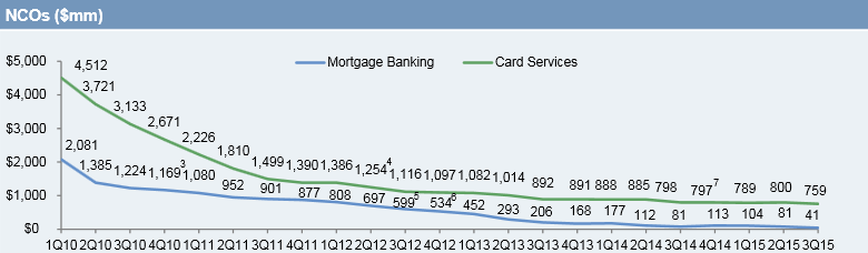 Also, as indicated in the chart, the Consumer & Community Banking division had a good quarter, mainly because of factors that should boost revenue fin the future as well. Consumer and business deposits were up 9% from last year and are growing nearly twice as fast as the rest of the industry average.. And the bank's customers are using their credit cards more often than a year ago, which led to a 4% increase in net interest income for the division and is also a good indicator of improving consumer confidence.