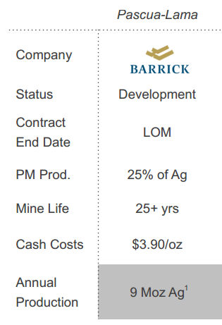 According to Silver Wheaton, "Pascua-Lama is forecast to be one of the largest and lowest cost gold mines in the world with an expected mine life in excess of 25 years." No wonder it was happy to provide $625 million in late 2009 to help Barrick pay for the project. The deal also included Silver Wheaton getting immediate silver from some of Barrick's other mines in Peru and Argentina. That's a win-win for Silver Wheaton.