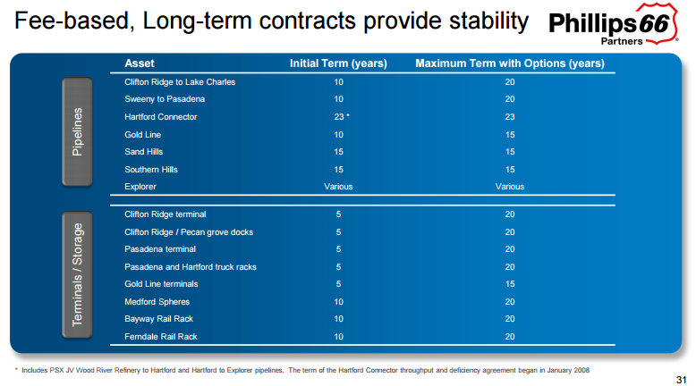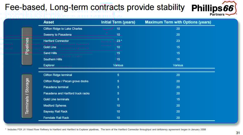 When it comes to a foundation of fee-based assets, Phillips 66 Partners is as perfect as it gets, because the company only owns fee-based assets. Further, the cash flow from its assets are secured under long-term contracts, which provide years of income security for the company.