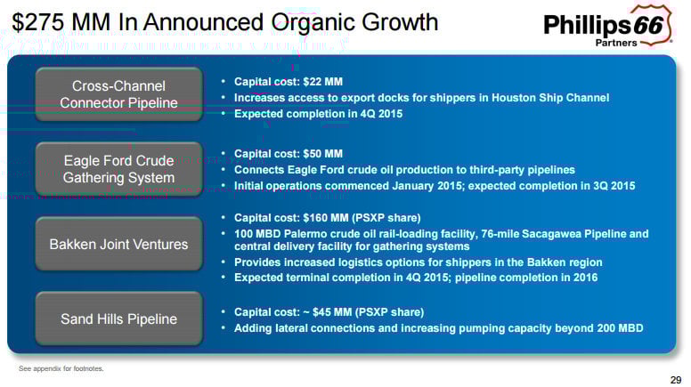 Currently, Phillips 66 Partners has $275 million in announced organic growth projects under construction, which are detailed on the following slide.
