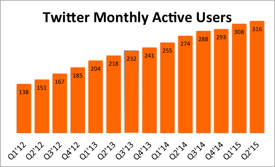Data for chart retrieved from respective quarterly filings. User data includes SMS Fast Followers. Previous quarters are adjusted to reflect Twitter's recent decision to include SMS Fast Followers. Chart source: Author