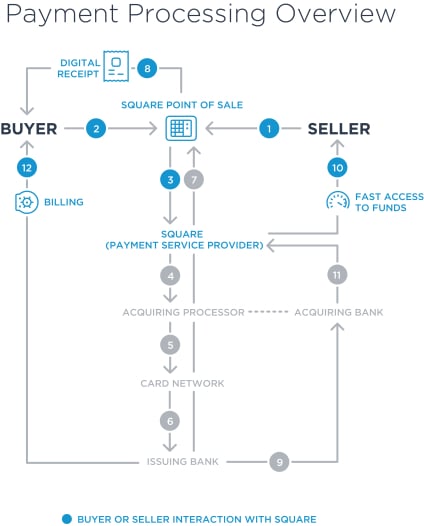 But behind the scenes, Square relies on its own Acquiring Processor that is an intermediary to the card networks and issuing banks. Take a look at this chart within the S-1 that lays out each step of the payment process.